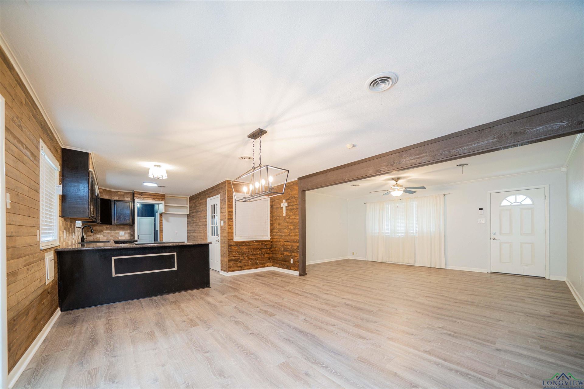 Check out this 3-bedroom, 2-bath brick home with a number of beautiful updates perfectly situated for convenience to all city amenities. A new roof installed only two years ago plus energy efficient windows are just the beginning. Inside, you will find new flooring throughout, fresh paint, stylish lighting fixtures and wood accents that add a modern touch. The spacious layout includes a large laundry room for extra convenience and storage. Step outside to a generously sized, fenced backyardideal for pets, play, or entertaining. The covered deck provides a perfect spot to relax or host gatherings year-round. With its central location, tasteful updates, and inviting outdoor space, this home is ready for you to move in and start making memories.